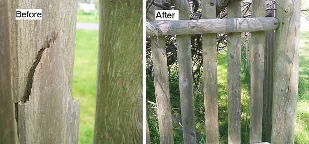 Un par de meses atrás, me fui moviendo ramas fuera de la zona de juego después de una gran tormenta, cuando se rompió la parte superior de un listón. Ahora, no podría tener una parte superior que falta; Supongo que lo que saltó a la cima de la lista de prioridades. Solo tuve un pequeño bloque de tiempo para reparar el listón que se rompió. ¿Qué debo hacer? Si adivinaron pegamento , entonces usted piensa como yo.