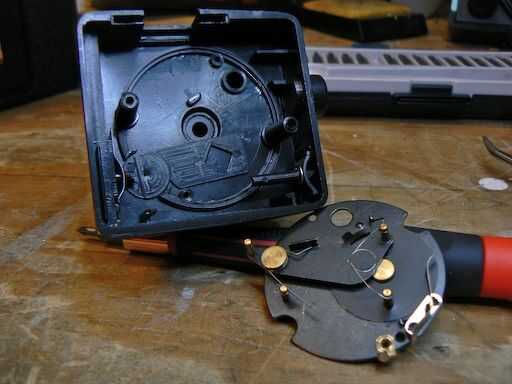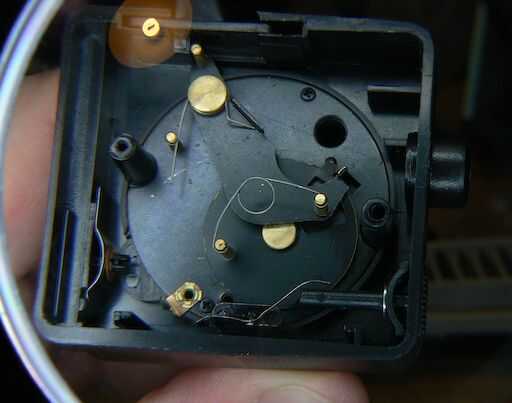 En este paso, quitamos los dos tornillos que fijan la placa del obturador que es la vivienda. Extracción de la placa del obturador expone el brazo de apertura que será modificado.