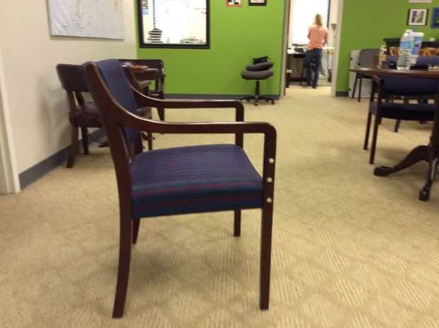 algo me cruzo mucho es una rota silla o una mesa "pie". Esto generalmente es causado por una rueda que pega y ajustar la madera como alguien trata de hacer rodar la silla. El ejemplo que tengo es tal una silla. El hombre tiene una noche de po