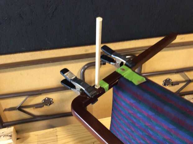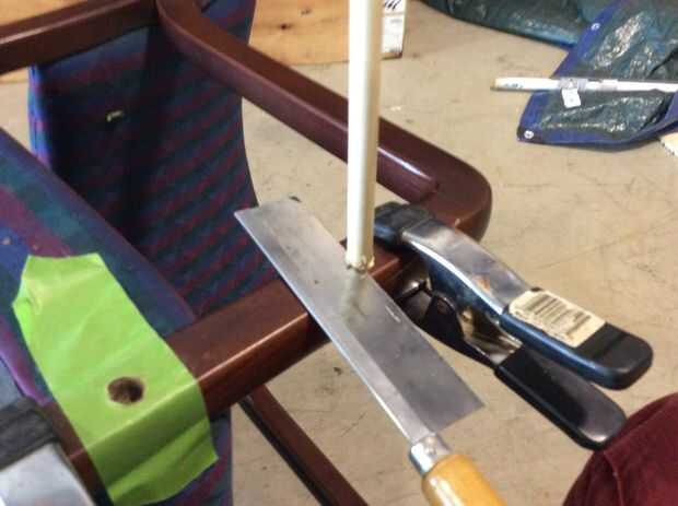 se trata de una vieja silla de un conjunto que compré para barata en una venta de garaje un tiempo atrás. Parece que alguien intentó arreglarlo pero parece muy endeble. Decidí parche encima de mí y darle una nueva capa de pintura.Herramientas necesar