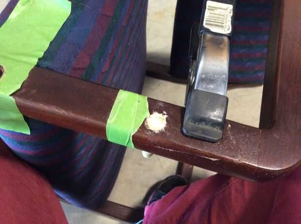 algo me cruzo mucho es una rota silla o una mesa "pie". Esto generalmente es causado por una rueda que pega y ajustar la madera como alguien trata de hacer rodar la silla. El ejemplo que tengo es tal una silla. El hombre tiene una noche de po