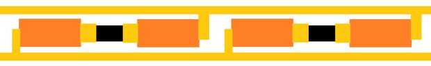 Partiendo de estas medidas, podemos elegir la cantidad de leds que vamos a poner en serie y la cantidad total de leds. Leds blancos necesita aproximadamente 3 V cada uno, así que decidí poner 2 en serie con una resistencia. La resistencia puede calcularse entonces tener una corriente de 15 mA, por lo que elegí 150 ohmios: (8,4 V-6 V) / 15 mA = 150 ohmios. Se colocan como se ve en mi pintura muy bonito dibujo (la parte negra es la resistencia, la naranja el led): p