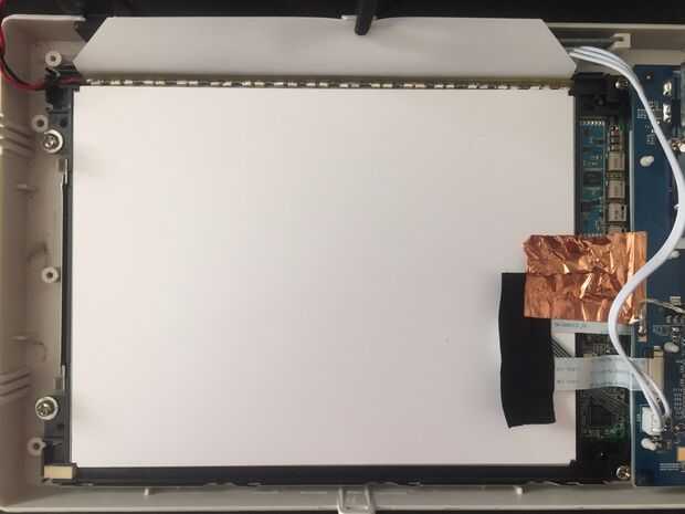 Si todo ha ido bien, la pantalla deberá encenderse bien. Gracias a la gran cantidad de leds, la pantalla es muy uniformemente iluminado y mucho brillante.