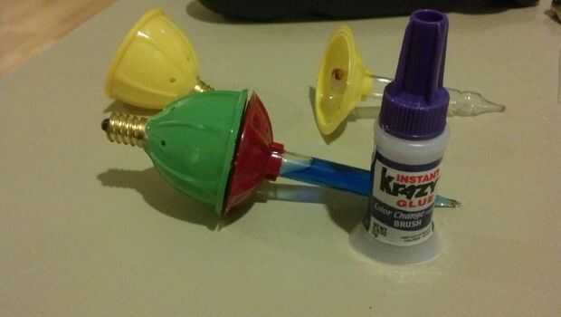Antes de intentar pegar nada, seco Coloque las mitades de la bombilla. Hay dos teclas que sobresalen en la parte superior que entra en depresiones en la base. Una vez que la parte superior e inferior con una costura estrecha estás listo para pegarla.
