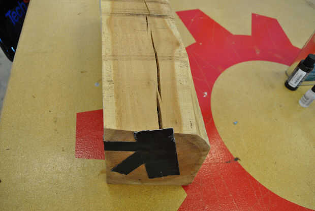 Cinta-para arriba los lados y la parte inferior de la pieza para mantener la resina dentro. Grietas profundas y ejecutan por lo que a veces es sabio de toda la pieza dentro de una bolsa de plástico de la cinta. Hacer el trabajo de reparación antes de realizar cualquier corte o cepillado de la madera y no te preocupes el puddling de resina en el exterior.