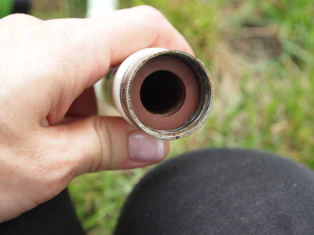 Una vez que usted toma hacia fuera la pieza negra, necesita Introduzca la manguera donde se corta la pieza. Esto puede ser difícil trabajar en la manguera. Algunas personas dicen que ayuda a sostener el extremo de la manguera con agua caliente durante un minuto antes de colocar la pieza de plástico. Me las arreglé para empujar sin hacerlo. Una vez que es empujar la pieza de conector negro completamente, entonces usted puede sacar las piezas de plástico verdes.