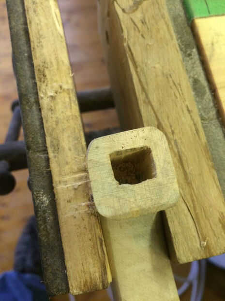 Entonces medí donde el agujero para el tornillo de fijación debe ser perforado y avellanado un agujero correspondiente en el mango.