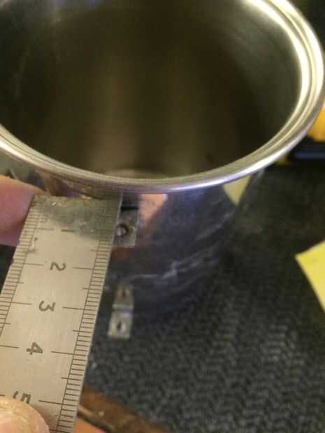 Una vez que estaba contento con la forma y el acabado del mango, tenía que trabajar la manera de fijarlo a la jarra. La manija original tenía pequeñas ranuras en la parte superior y parte inferior de la D, que emparejó para arriba con pestañas soldadas a la jarra y se fija con tornillos a través del mango.