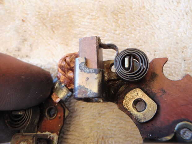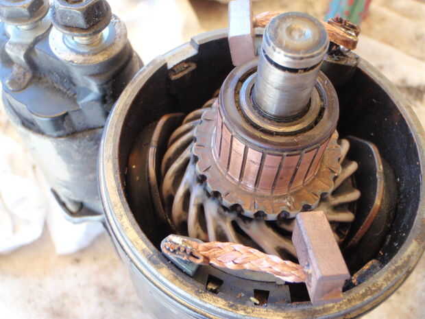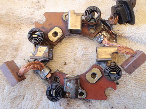 Montaje es recta hacia adelante si sabeis un truco con la placa de cepillo. No poner las escobillas correctamente tienen la mitad con la primavera atascada contra el lado del pincel, de que él, que es el truco! Ahora puede montar todo sin tener que luchar con los resortes. La armadura y el solenoide deben ir conjunto y asegúrese de que obtener la horquilla en la derecha punto. Si usted ha estado prestando atención, verá que he puesto el solenoide en revés, OPPS! la prueba de banco recoja. Puede montar las bobinas de campo y la marca en el lado del motor estén alineada para que sea más fácil de montar.