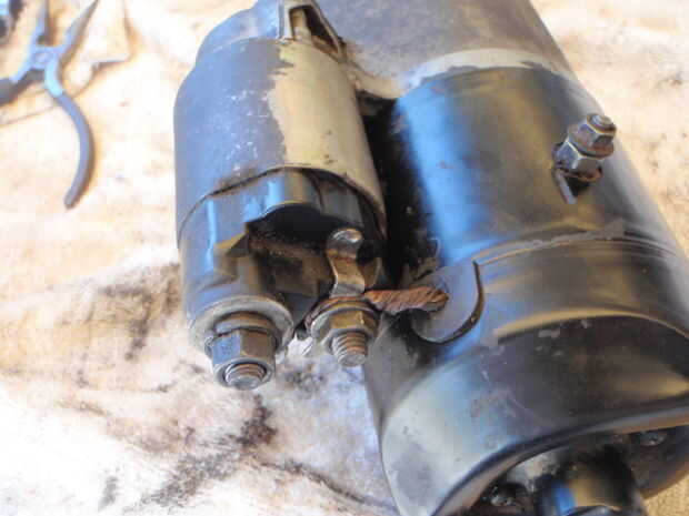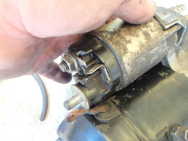 Conecte el cable positivo a la cima terminal del solenoide. El motor de arranque debe hacer nada no la chispa o haga clic en. Conecte otro positivo a la pequeña terminal del solenoide que del arrancador debe fuego lanzando el piñón hacia fuera y girando el motor.