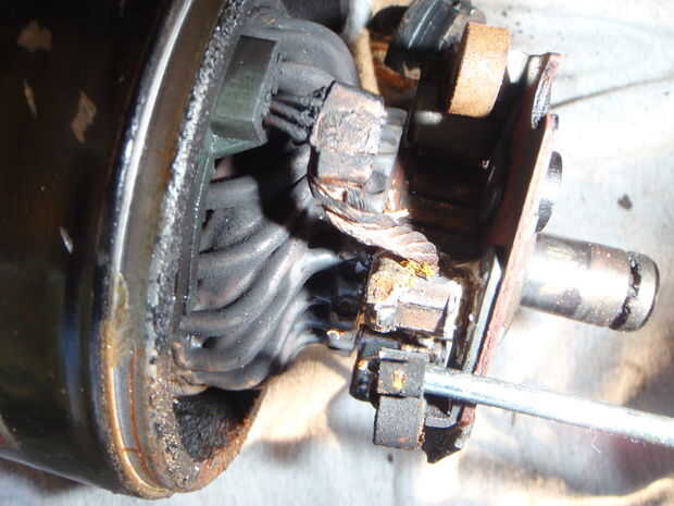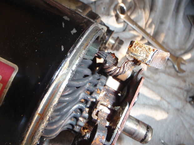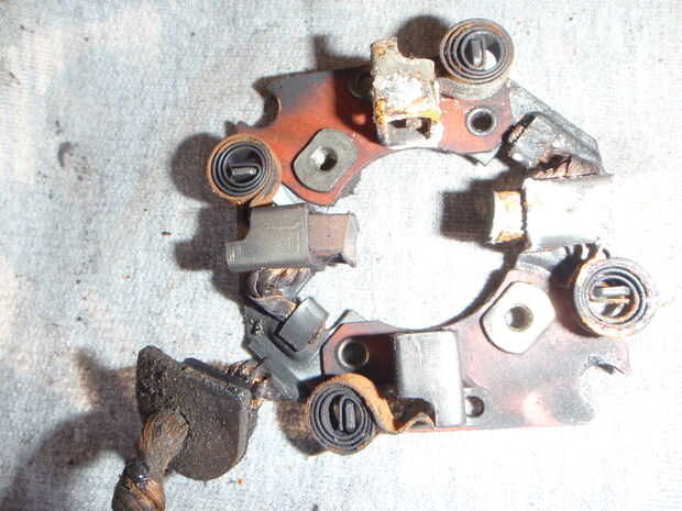 7. con cuidado retire los 2 cepillos conectados a los bobinados de campo tirando de nuevo el resorte y retirar el cepillo.