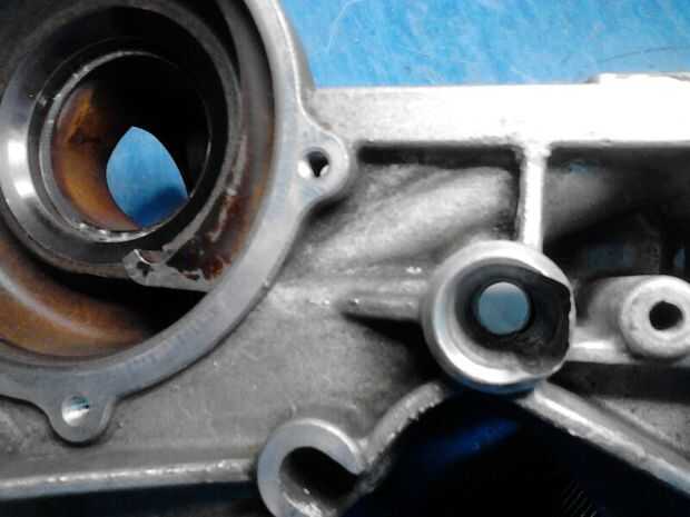 Se pueden apreciar los defectos en los alojamientos y la pérdida de los casquillos de acero.