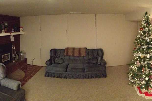 Diciembre de 2013 enrollado alrededor y no tuvimos pérdidas más, así que pensé que era seguro colgar unos paneles de yeso. Yo ya había utilizado aislamiento de espuma rígida para cubrir la sección de hormigón de la pared, y mullida el aislamiento batt existente en la parte superior de la pared. Mi esposa iba a ser fuera de la ciudad para el trabajo de un par de días, así que después los chicos fueron a la cama sería un buen momento para colgar las hojas un par. Usé "tablero del subsuelo" que es un yeso material realizado para zonas con mayor humedad. Por lo general, drywall se cuelga horizontalmente, pero desde que yo trabajaba por mi cuenta, era más fácil a la hoja completa en el extremo de lo que era intentar levantar una hoja completa 4' del suelo. A ayudante en conseguir las hojas de tope hasta el techo, usé una palanca debajo del borde inferior de la tablarroca. La palanca fue simplemente un desecho 1/4" madera contrachapada que se colocó sobre un pedazo de tubo de pvc de 1/2". Acaba en un lado de la madera contrachapada y empujó la pared hasta el techo. Después de hundirse un par tornillos, permanecía en su lugar y quitar la palanca.