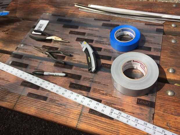 1. vidrio o ligeramente más grande que la ventana de la hoja del policarbonato. (Compré 2 en caso de que me cagué)