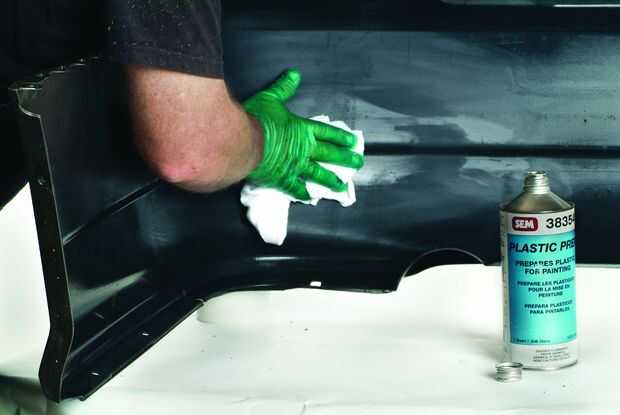 Después de quitar la pieza de plástico de su tope (los tornillos de conexión de la cubierta plástica pueden ser difíciles de localizar: tratar bajo las luces de la cola, detrás de los pozos de rueda y a continuación el cierre de tronco donde encontramos nuestro Honda Civic), necesitarás un lugar cálido y seco para trabajar para que los adhesivos de reparación pueden curar correctamente. Pero que adhesivos necesita dependerá del tipo de plástico en el parachoques. Así, el primer paso es encontrar un sello en el interior de su parachoques etiquetado como PP, PPO, TPE, PUR o TPUR. Cuando usted compra sus productos de reparación, asegúrese de consultar con el counterman en la tienda de piezas de automóvil para determinar cual receta es la adecuada para el plástico de su tope. Asegúrese de que se adhiera a la misma marca para todos sus productos para asegurar la compatibilidad.