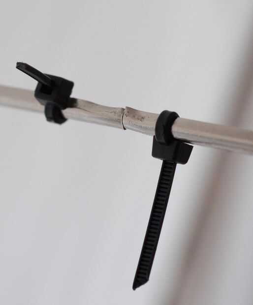 Estas dos imágenes muestra otra barra "U" rota con un gancho de barra ya en la barra de la "U" con el lazo envuelve sosteniendo tanto en el lugar. Las ataduras se colocan en el extremo de las barras de suspensión para ayudarles a permanecer en el lugar.