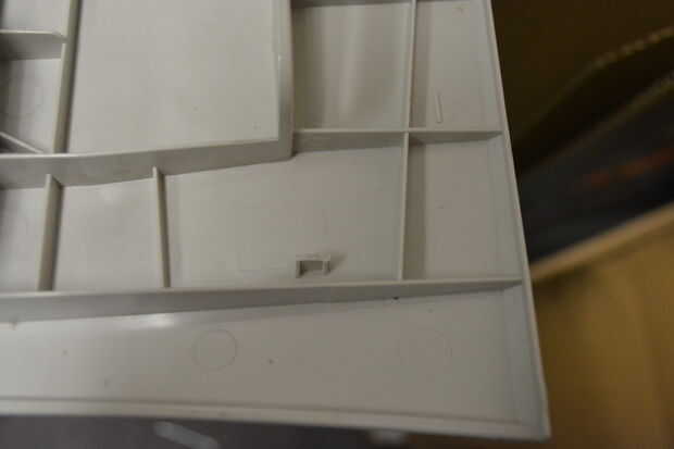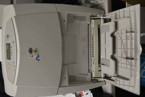 La pequeña pieza de plástico que mantiene cerrada la puerta de esta impresora se desprendió hace algún tiempo. Cinta ha sido asegurándolo por un tiempo ahora, pero Sugru podrían ser capaces de hacerlo mejor.