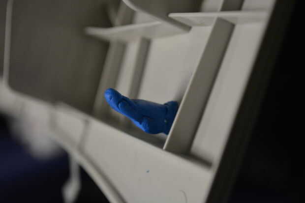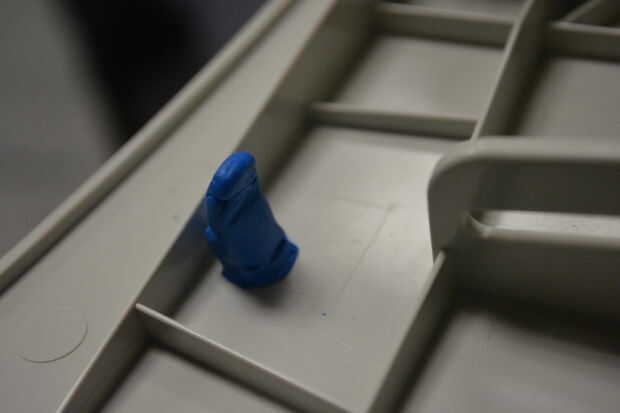 Había doblado mi pedazo de Sugru donde he marcado en el paso anterior. Me imagino que añadiendo que una pequeña protuberancia también funcionaría, mientras todavía se ajusta a través de la abertura en la pared de la impresora.