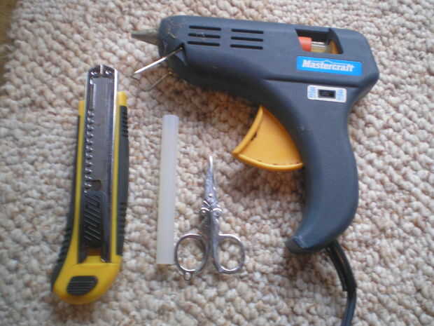 Conseguir su confianza par de tijeras hacia fuera y corte el pedazo de ceniza o pieza fundida de plástico fuera de alfombra y conecte la pistola encoladora