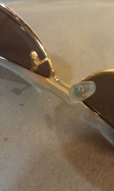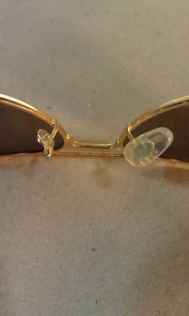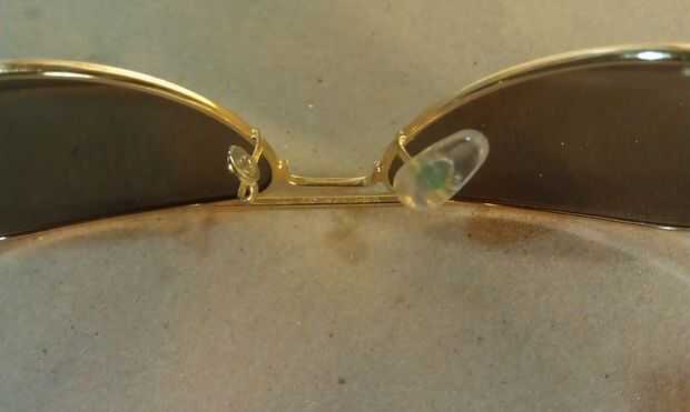 Tal vez te estás preguntando... "¿Cómo sabría él lo que sería más cómodo? La pieza de punta es fuera". Gran pregunta, lector imaginario. Sólo una de las piezas de la nariz se cayó. Usé el otro como punto de referencia para averiguar cómo quería moldear mi Sugru. Da vuelta hacia fuera, no tenía que hacer un cambio demasiado drástico para arreglarlo. De hecho, puede omitir este paso si no te apetece probarlo. Si está fijando un par de prescripción o gafas de diseño real, no jugar con los cables en todos. Olvidar este paso totalmente.