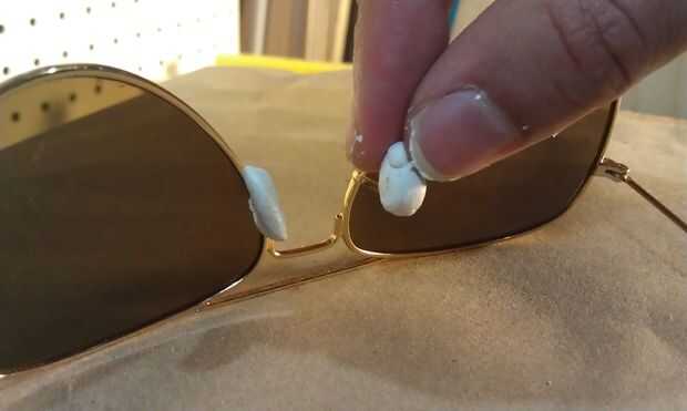 ¿Cómo hacer ellos un ajuste personalizado? Colóquese las gafas. Forma el Sugru contra su nariz hasta que estés satisfecho con su forma y comodidad. Luego sacarlos, suavizar cualquier bits feos y ponerlos en un lugar seguro para secar.