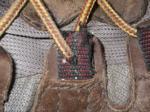Encaje las botas con los ojales perforados nuevos. Eso es todo. Reparación simple. Me tomó solo unos minutos.