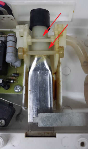 Retire los rodillos de plástico 2. Uno saltará. Para quitar el más pequeño, los lados del soporte de montaje de la flexión y fácilmente saldrá.