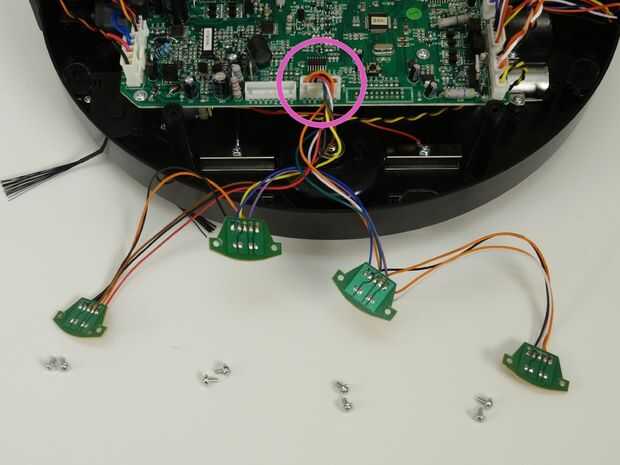 Desconecte el enchufe de circuito multicolor que conecta los sensores a la placa principal para eliminar completamente.