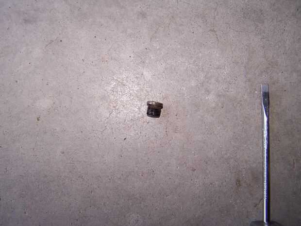 La imagen 3 muestra un enchufe/perno de acero que es compatible con el tamaño del orificio en el silenciador. Funcionará cualquier tornillo corto rechoncho.