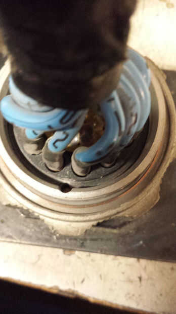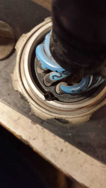 se verá un anillo de retención con una ficha pequeña sobresale de acero circular. Solo con cuidado jale fuera de la ranura pequeña. Esto libera el disco de contacto que ahora puede ser quitado fácilmente tirando suavemente del cable. Busque el lugar que el quid de la alineación del disco ha sido interrumpido. Está a medio camino entre uno y doce. (enfrente del quid de la alineación de conector mencionado anteriormente.
