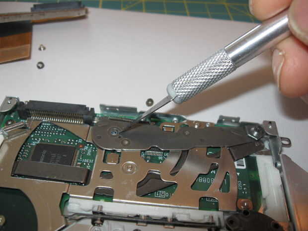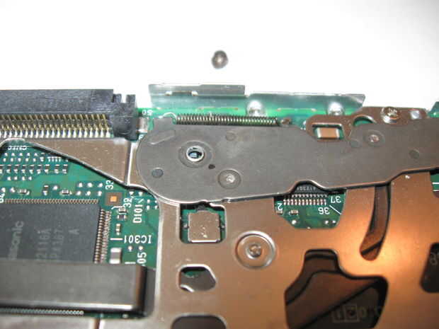 Esta unidad tenía un pivote mal alineado punto sobre el brazo metálico gris cerca de la parte posterior de la unidad.