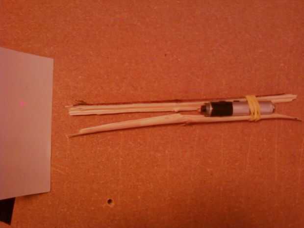 3. Envuelva una banda de goma alrededor de los palos y puntero láser