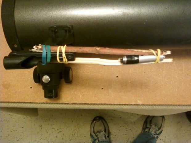 4. Envuelva las otras bandas de goma alrededor de la lente buscadora y los palillos