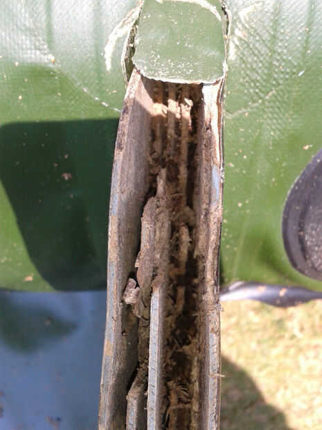 Para iniciar la reparación, utilice un punzón agudo (doblado un ciclo, habló en forma de gancho y martilló el extremo para hacer un rascador como propina al final). Raspar suavemente hacia fuera tanta madera muerta y dañada como puedas. Si el espejo está compuesto de capas, usted notará que las termitas han comido sobre todo capas alternas de la capas.