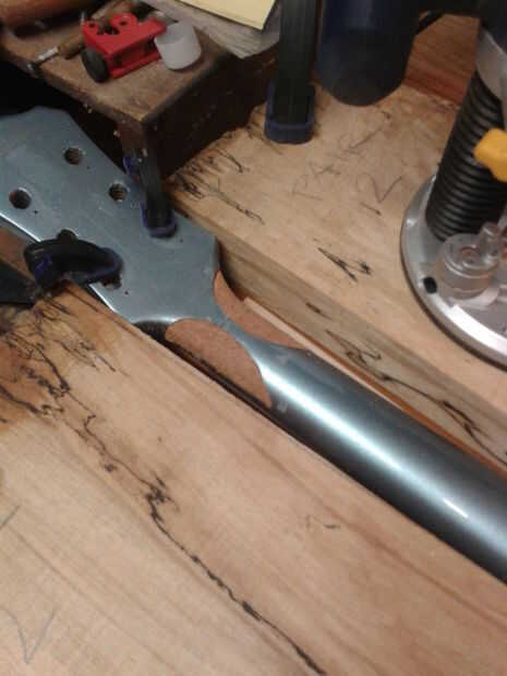 Qué vamos a hacer es hacer una ruta de poca profundidad (no tan profunda como el alma) en toda la nuca. Los mismos principios se aplican como antes, sin esquinas y todo eso. Sólo utilicé una regla cualquiera de los extremos. Esto será no sólo sirven para reforzar aún más el cuello, pero también para ocultar los huecos potencialmente desagradables que pueda haber creado con no bastante conseguir sus bloques perfectos. Por lo poco de la madera original seguirá siendo, no importa.