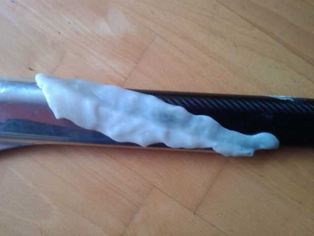 7. Mantenga en lijar hasta que desaparezca todo el elastómero viejo. No te preocupes de raspar el interior de la manga - los raspan marcas ayudará el nuevo elastómero para bien, y no serán visibles.