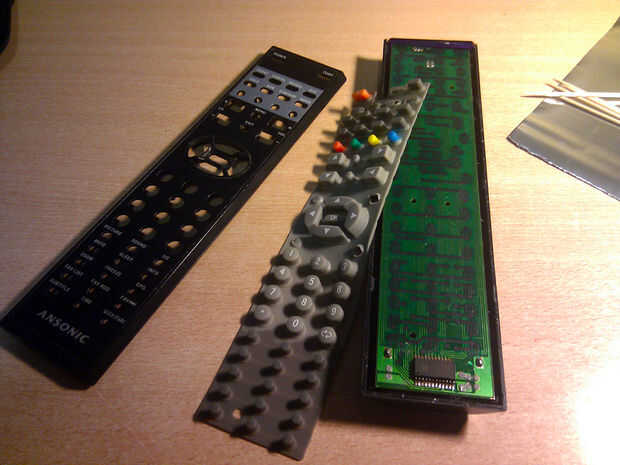 Tendremos la carcasa, la membrana de los botones y el circuito impreso del mando con su microcontrolador.