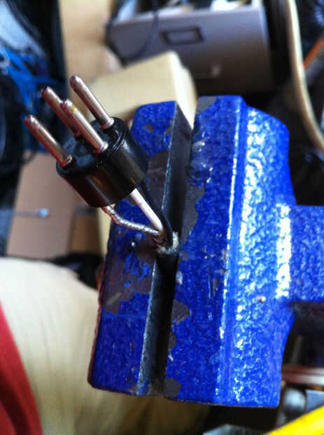 Luego corte el extremo de un cable XLR y había soldada al conector Amphenol de 4 pines que el micrófono. Yo podría haber cambiado el conector de salida, pero me gusta la idea de que el micrófono conmutable de Lo-Z a Z alta por cambio de pernos. Además de que es geek cool.