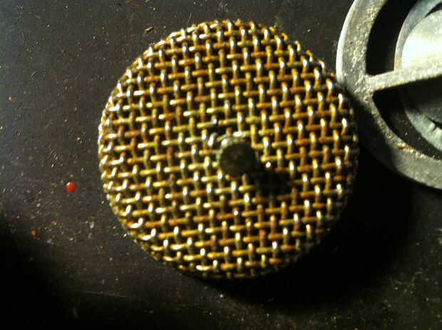 mi iglesia tiene un par de micrófonos de condensador de AKG C1000S para uso ocasional. Recientemente, uno de ellos tomó una picada hacia el suelo, y la parrilla del acoplamiento consiguió golpeada fuera de la manga de aluminio en la parte delantera d