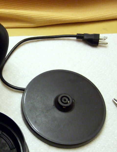 El anillo exterior es el suelo, y se puede ver una pequeña etiqueta del metal que hace contacto con el anillo externo en la parte inferior de la cafetera.
