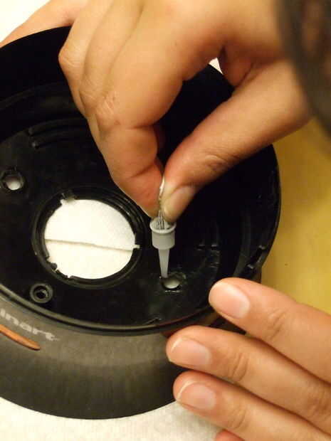 También pegué a los espaciadores de plástico en la base de plástico (que se desprendió durante el desmontaje) con pegamento loco.