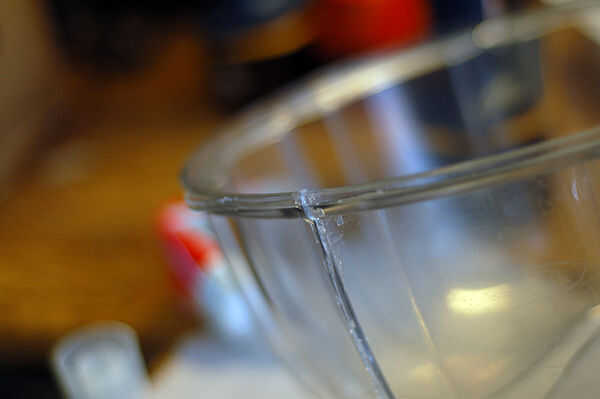 No garantizando un completo instructivo, untó pegamento en hacia el borde de la grieta, donde podría colocarlo y luego cubrir la grieta, a ambos lados, con una capa de pegamento para mantener Unidas.