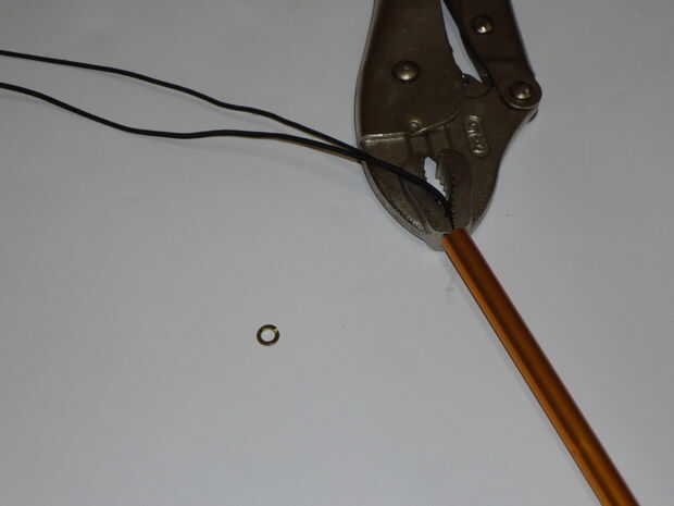 Último pero no menos importante que necesita montar su poste de la tienda y atar el extremo suelto. Para hacer esto usted tendrá que tirar del elástico hacia arriba hasta que esté firme pero no apretado. Entonces usar su vice apretones que sujete el elástico de modo que usted puede atar el extremo suelto con la lavadora en su lugar. Ahora todo lo que queda por hacer es cortar la izquierda sobre la espalda elástica.