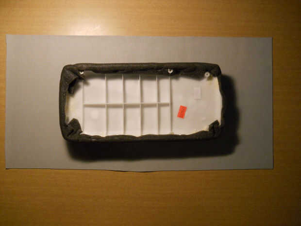 decidí utilizar un trozo de vinilo que empareja el interior de mi coche, un gris claro. Pero por supuesto cualquier material puede ser utilizado; desecho de cuero denim, o su sudadera vieja favorita. Pero ten en cuenta que esta pieza obtendrá un montón de desgaste, y el vinilo es muy fácil de limpiar (¡ y barato! Pagué unos $4 dólares por una yarda de la media en una tienda de tela).