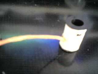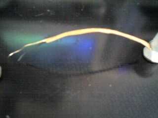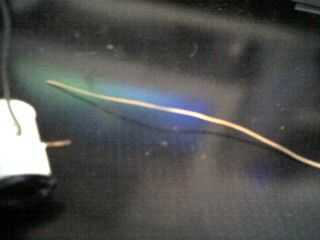Paso dos: Habrá un trozo de cinta en la parte inferior de la bobina que cubre los cables que usted necesita para despegue. Una vez que tengas los cables expuestos necesita afeitar apagado la capa transparente en el cable de la bobina. Cortar un trozo de alambre de la bobina (se puede conseguir en cualquier tienda radio shack o electrónica) sobre 4 pulgadas de largo y la capa transparente de bothe termina 1/4 pulgadas de largo del afeitado.