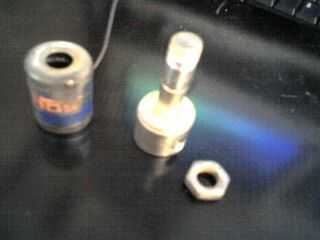 Paso 1: Sujete la base del solenoide con un par de cerraduras del canal o en un tornillo de banco. Retire la tuerca en la parte superior del solenoide. La bobina y la tapa saldrá como una unidad. Deslice la bobina hacia fuera desde la parte inferior.