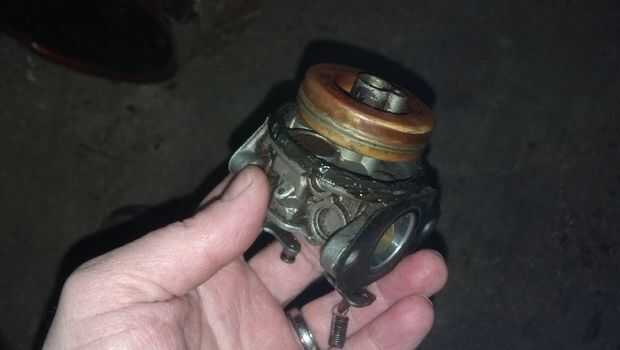 Miré en línea para un sistema de juntas para reparar el carburador, pero es difícil encontrar piezas para este modelo, especialmente cualquier cosa para el carburador. Supongo que es demasiado viejo. Este es el paso donde casi me di por vencido y puso detrás hacia fuera en la acera, pero tuve una idea.