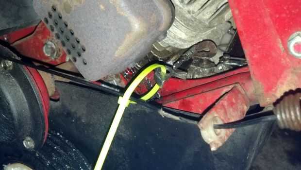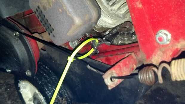 Después todo juntos de nuevo, me di cuenta que me faltaba un soporte que necesitaba para el resorte del acelerador. Carburadores de Tecumseh la mayoría tienen un resorte que se enrolla alrededor del eje del eje de la mariposa de acelerador. Esto es extraño, y ha un pequeño resorte unido a una palanca basculante (asumo ajustable) que no hay lugar para colocar. Me encontré una pequeña atadura alrededor del cable de embrague del taladro y apretó hasta que el resorte se enseñaba.