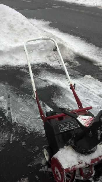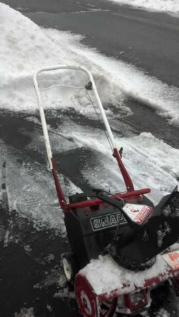 Tenemos aproximadamente un pie de nieve muy pesado, mojado el día después de terminar esto. La barrena es pequeña y en algunos lugares tenía que dejar que la máquina a andar sobre la nieve y cuidar de él en 2 pasos. Aunque es sólo un motor de 2 tiempos de 3hp, accionado por medio de esta nieve sin mucha interferencia en todo. El motor no gusta gas viejo (mi gas 2 tiempos puede a veces envejece un poco). Funcionó mucho mejor después de que tuve que mezclar algo de gas nuevo para él.