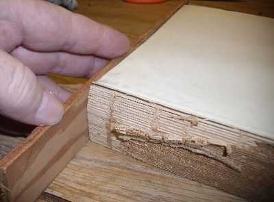 Es muy importante que las páginas "cuadrado-para arriba" antes de sujeción.  Mi libro tenía una forma curvada a la espina dorsal... que hace esto difícil.  Encuadernaciones profesionales utilizan un especial "JIG" para alinear todos los bordes del libro.  No somos tan afortunados.  He tenido buen éxito sólo usando un pedazo de madera y ser cuidadoso para sujetar el libro con los bordes alineados muy cerca.